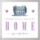 Cita de Jane Eyre de Charlotte Bronte con diseño de casa vintage y texto gris y rosado: "Donde quiera que estés es mi hogar — mi único hogar". Del Capítulo 22 del libro. Ver toda la colección en las pasiones de Thornfield