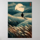 Póster Japanese Landscape Print Moonlit Hills, Torii Gate