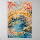 Póster Japanese-style arched bridge spans a tranquil rive