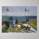 "Jardín en Sainte-Adresse" por Claude Monet es un cuadro vibrante e icónico que captura una escena de jardín sereno junto al mar. La composición incluye una rica exposición de flores de colores, con vistas al mar y a los barcos lejanos en el horizonte. Las flores, en su mayoría en tonos rosa, violeta y amarillo, están dispuestas de manera formal, pero natural, y la luz filtrada a través de los árboles crea un efecto suave y enmarañado en todo el lugar. Las pinceladas distintivas de Monet aportan movimiento y vida a la pintura, reflejando la delicada interacción de luz y color en la naturaleza. El cuadro evoca una sensación de paz y tranquilidad, transportando al espectador a un momento perfecto de calma junto al mar.