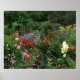 Este poster de fotografía de arte es una celebración del verano en el jardín de flores. Un espantapájaros domina los guisantes dulces rosados, los girasoles amarillos, el ageratum púrpura, las dahlias rosas, las rudbeckias marrones naranjas, los gladiolos blancos, la nicotiana, las zinnias y los nasturtios y un arcoiris de colores. Todo está rodeado de un precioso follaje verde.