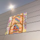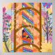 Una pieza vibrante con rayas coloridas, patrones florales, elementos geométricos y diseños abstractos. El rico uso de flores, líneas y formas proporciona una composición dinámica y visualmente atractiva, perfecta para los amantes del arte moderno.