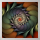 Arte abstracto "Jardinere" de Susan Wallace. Derechos reservados © 2009, Susan Wallace. Un arco iris de pétalos texturados converge en una espiral floral. Adecuado para poster o impresión enmarcada, diseñado para ajustarse a un marco de tamaño estándar.