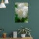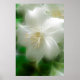 Jazmín blanco brillante poster, composición inspirada en una flor jazmín de aroma blanco brillante. Su estambre amarillo es audazmente visible, así como sus hojas verdes. Este bonito jazmín blanco está completamente florido y al mismo tiempo es sencillo y lujoso. La imagen fuente se edita con un efecto de manipulación especial que crea algún tipo de destellos de luz y los muestra en los pétalos de flores que les devuelven el brillo que tienen bajo la luz del sol.
