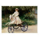 "Jean Monet en su caballo de hobby" es un retrato íntimo del hijo Jean de Monet, capturado en un momento de inocencia juguetona. Este trabajo muestra a Jean Monet montando un caballo de hobby, situado sobre un telón de fondo que sugiere un jardín o un entorno al aire libre típico de la casa de Monet en Argenteuil. La pintura refleja un ojo avizor por capturar momentos fugaces de la vida cotidiana, particularmente en el contexto de su familia. Las pinceladas son animadas y expresivas, capturando el movimiento del niño y el ambiente de la escena. El uso de colores suaves y armoniosos y el foco en la luz y la sombra impregnan la pintura de un sentido de calor y afecto familiar. "Jean Monet en Su Caballo de Hobby" ejemplifica un estilo impresionista temprano y la habilidad de infundir a los sujetos comunes un sentido de encanto y vitalidad.