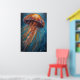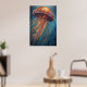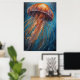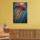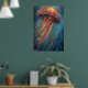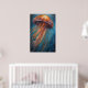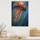 Un retrato artístico poster HD que ilustra un ejemplar de la medusa bajo las aguas del océano al estilo de la pintura al óleo