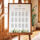 Esta tabla de asientos incluye pinos acuáticos rústicos y una letra manuscrita bohemia. Este cuadro incluye 15 cuadros de 11 para un total de 165 personas. Personalizar además cambiando el tamaño y añadiendo cuadros adicionales según sea necesario.