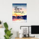 El poster cristiano de escritura Inspiradora cita una pintura acuarela con una bella puesta de sol naranja, amarilla y rosa sobre el agua. Presenta una Biblia motivadora Verse Jeremiah 31:3, "Te he amado con un amor eterno".