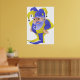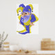 Una persona divertida como bufón violeta y verde. Este diseño parece realmente efectivo en este Poster