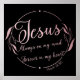 Women’s elegant floral Christian Bible verse quote, “Jesus: Always on my mind, forever in my heart” based on Mark 12:30. Spread inspiration with this feminine faith-based message. Encourage others to love the Lord with all your, mind, soul, and strength.