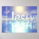 La superficie de agua altamente reflectante muestra el nombre de nuestro Señor con una cruz. Hermoso impreso.
