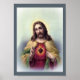 Jesús mostró las heridas en sus manos y en su corazón con cruz resplandeciente. El arte culto vintage.