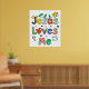 Mensaje de texto alegre y decorativo que dice las palabras JESÚS ME QUIERE. El área de fondo es totalmente transparente, por lo que es fácil personalizar y elegir cualquier color que desee. Imagen disponible en varios regalos y productos.