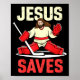 Póster Jesus Saves Ice Hockey Goalie Player Christian Fun