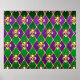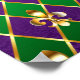 jewelry, background on Mardi Gras of purple and green rhombus, decorated gold lilies.