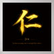 In this design, the kanji 仁 stands in gold against a deep black background, symbolizing compassion grounded in inner power.