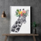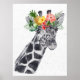 Póster Jirafa blanca y negra con corona de flores Animal