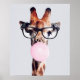 PÓSTER JIRAFA CON GAFAS SOPLANDO CHICLE ROSA