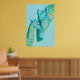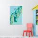 Una cariñosa madre y una pequeña jirafa en tonos melocotón, amarillo y agua. Perfecto para una guardería o una habitación para bebés.