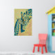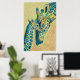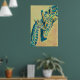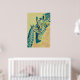 Una cariñosa madre y una jirafa de bebés en tonos verde azulados, acuáticos y bronceados