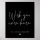 Este cartel de "Deseamos que estuvieras aquí", en Loving Memory, presenta un tipografía manuscrita y un diseño minimalista moderno. Su diseño en blanco y negro denso lo hace perfecto para cualquier ocasión. Cambia fácilmente los colores y edita *most* frases para satisfacer las necesidades de tu ocasión. Este letrero es perfecto para su boda o evento minimalista, elegante o moderno.