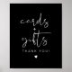 Este signo de tarjetas y regalos presenta un tipo de letra manuscrito y un diseño minimalista moderno. Su diseño en blanco y negro denso lo hace perfecto para cualquier ocasión. Cambia fácilmente los colores y edita *most* frases para satisfacer las necesidades de tu ocasión. Este letrero es perfecto para su boda minimalista, elegante o boho en cualquier época del año.