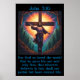 Juan 3:16 Porque Dios amó tanto el mundo que dio a su único Hijo, que quien crea en él no perecerá sino tendrá vida eterna. Sobre un poster con Jesús en la cruz