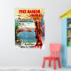 Afiche vintage que anuncia el aniversario del puerto libre, Los Ángeles y San Pedro, California, el 26 y 27 de abril de 1899. Una mujer con un vestido de joyas sostiene la bandera estadounidense y suena una trompeta. En el fondo, los cúpidos dejan caer flores sobre una detallada vista aérea de San Pedro, el puerto de Los Ángeles y el puerto Libre, California. Las líneas ferroviarias conectan Los Ángeles con la bahía. De una litografía original del siglo XIX (1899) de J.F. Derby. Todos los derechos reservados © 2013 padre art