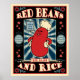 Poster de arroz y judías rojas de Nueva Orleans, con Red Bean en el gorra de un chef, diciendo: "¡Yo hago el arroz bueno!"