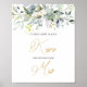Este diseño presenta una ilustración de acuarela de follaje verde y hojas de eucalipto. Esta tarjeta/letrero es perfecto para agregar diversión y emoción a tu despedida de soltera o fiesta de bachelorette. En la parte superior de la imagen de vegetación - confeti con efecto verdoso y dorado.