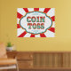 Cartel del juego Carnival o Circus Coin Toss con franja roja y blanca.