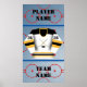 Poster con una camiseta de hockey sobre una réplica de pista de hielo con palos de hockey cruzados y un disco disponible en una amplia variedad de combinaciones de colores de equipo. Personalizar con el nombre del jugador, número y nombre del equipo. Es un gran regalo para los jugadores de hockey, entrenadores de hockey y aficionados al hockey, así como para los jugadores de la liga de fantasía del hockey.