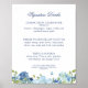 Este floral y polvoriento signo de recepción azul y blanco, Signature Bebe es perfecto para un boda elegante y tradicional. El diseño presenta hermosas flores acuarelas en tonos azul polvoriento y azul marino, así como una pequeña mariposa y tu texto en caligrafía guiada y tipografía serif. Cambie fácilmente el texto a lo que desee utilizando la herramienta de diseño. Creado como parte de mi elegante colección de bodas Juliette. Asegúrese de examinar los demás elementos de este conjunto para crear una sofisticada y coordinada búsqueda de la celebración de su boda y los eventos que lo rodean. Para añadir texto o cambiar el posicionamiento, cambiar fuentes o colores de fuente, o añadir gráficos, haga clic en "Personalizar" y "Editar usando la herramienta de diseño". Si necesita ayuda adicional para ajustar esta plantilla, póngase en contacto conmigo a través del sistema de mensajería de Zazzle. Por favor tenga en cuenta que yo creo los diseños, pero todos los trabajos de impresión y envío son realizados por Zazzle en sus instalaciones de producción, así que si hay algún problema con su pedido, por favor contacte con su servicio de atención al cliente al 1-888-892-9953 o https://www.zazzle.com/about/ask.