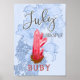 El Larkspur es la flor de julio, simbolizando un sentido del humor, ligereza del corazón. El Ruby, la joya de nacimiento de julio, representa éxito, satisfacción e integridad. Un diseño rojo, blanco y azul.