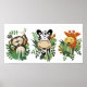PÓSTER JUNGLE SAFARI MONKEY, ZEBRA Y GIRAFFE ART