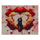 Una silueta romántica de una pareja en un abrazo, rodeada de un corazón vibrante y pétalos rojos dispersos. Perfecta para invitaciones de boda y celebraciones del Día de San Valentín, capturando la esencia del amor y la unión