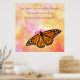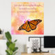 Justo cuando la oruga pensó que el mundo estaba terminando, se convirtió en una mariposa - mariposa monarca en zinnia rosa con un fondo amarillo y rosa de ensueño, con la cita