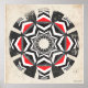 Pared de Kaleidoscope colgando poster. Patrones fractales, rojo, negro, gris, blanco. Vista vintage, sensación angustiada.