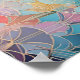Un patrón vibrante y simétrico presenta motivos florales superpuestos en un calidoscopio de colores, que van desde pasteles suaves hasta tonos profundos. Las líneas y formas intrincadas le dan un efecto vidriera.