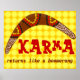 La declaración "Karma regresa como un boomerang" con la imagen de un bumerang con decoración de estilo aborigen