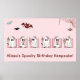 Kawaii Halloween Poster de cumpleaños - Fantasmas rosadas y Recuerdos dulces Captura la magia de un cumpleaños espeluznante y dulce con este poster kawaii de Halloween! Con alegres fantasmas rosados, telarañas pastel y suaves motivos de Halloween en tonos rosa y violeta, este poster es perfecto para celebrar cumpleaños y Halloween. Personalízalo con el nombre y edad del niño de cumpleaños o del mascota para crear un regalo memorable que será apreciado mucho después de que el fiesta termine. ¡Una adición bonita y caprichosa a cualquier habitación!