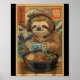 Póster Kawaii Japanese Ramen Sloth Retro Gaming Shirts Fo