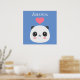Ilustracion de un lindo estilo Kawaii Panda oso con corazón de amor y nombre de personas personalizables.