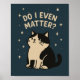Añade un toque de emoción y cortesía a tu espacio con este triste pero adorable poster de gatos. Con un gato negro y crema personalizado sentado bajo estrellas de fondo azul marino, este ilustracion minimalista capta el sentimiento relativo de "¿Acaso importa?" Perfecto para los amantes de los gatos, los amantes del arte emocional y kawaii y los amantes de la decoración de las paredes, divertida pero con mucho sentido. Esta bonita cita artística hace una adición encantadora y significativa a dormitorios, oficinas o acogedores rincones de lectura.