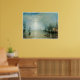 En esta pintura hay una luna llena en el cielo nocturno. Los barcos de vela están atracados por la noche.