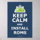 Make your statement about rooting your Android and installing custom ROMs. This striking poster states, "Keep Calm and Install ROMs" and contains the Android mascot in green over a blue background. This is reminiscent of the old "Keep Calm and Carry On" propaganda posters produced by the British government in 1939 during the beginning of the Second World War, intended to raise the morale of the British public in the event of invasion.