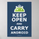 Make your statement about open source operating systems by choosing Android as your mobile OS of choice. This striking poster states, "Keep Open and Carry Android" and contains the Android mascot in green over a blue background. This is reminiscent of the old "Keep Calm and Carry On" propaganda posters produced by the British government in 1939 during the beginning of the Second World War, intended to raise the morale of the British public in the event of invasion.