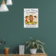 A joyful woodland graduation poster featuring a dancing orange fox, brown bear, and creamy white bunny wearing graduation caps. They celebrate on light green grass with pastel flowers, floating hearts, sparkles, and confetti above them, all set against a warm golden glow background. Perfect for preschool or kindergarten graduation parties, this cute forest animal illustration brings fun, friendship, and celebration to your child’s special milestone.