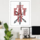 Añade algo de humor a tu cocina o comedor con este poster gráfico que cuenta con ilustraciones antiguos de cubiertos de plata respaldados por las palabras "Just eat it" en una tipografía roja audaz. Moderno y fresco con un toque de fantasía vintage, este poster le haría un gran regalo divertido para el gourmet de su vida.