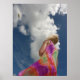 Niñita volando su primera cometa en un hermoso día soleado en la playa.